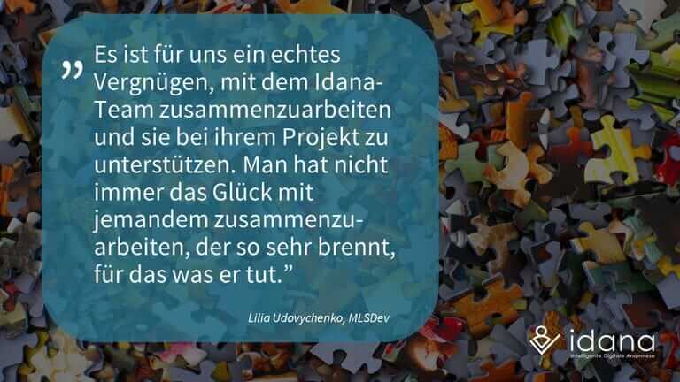 Dank Skype und Co ist die Zusammenarbeit über mehrere Staatsgrenzen hinweg ein Kinderspiel. Im virtuellen Raum koordinieren die MLSDev-Projektmanagerin Anastasia Horobets und unser technischer Leiter Jerome Meinke die Zusammenarbeit des Projektteams mit unseren Idana-Mitarbeitern.
